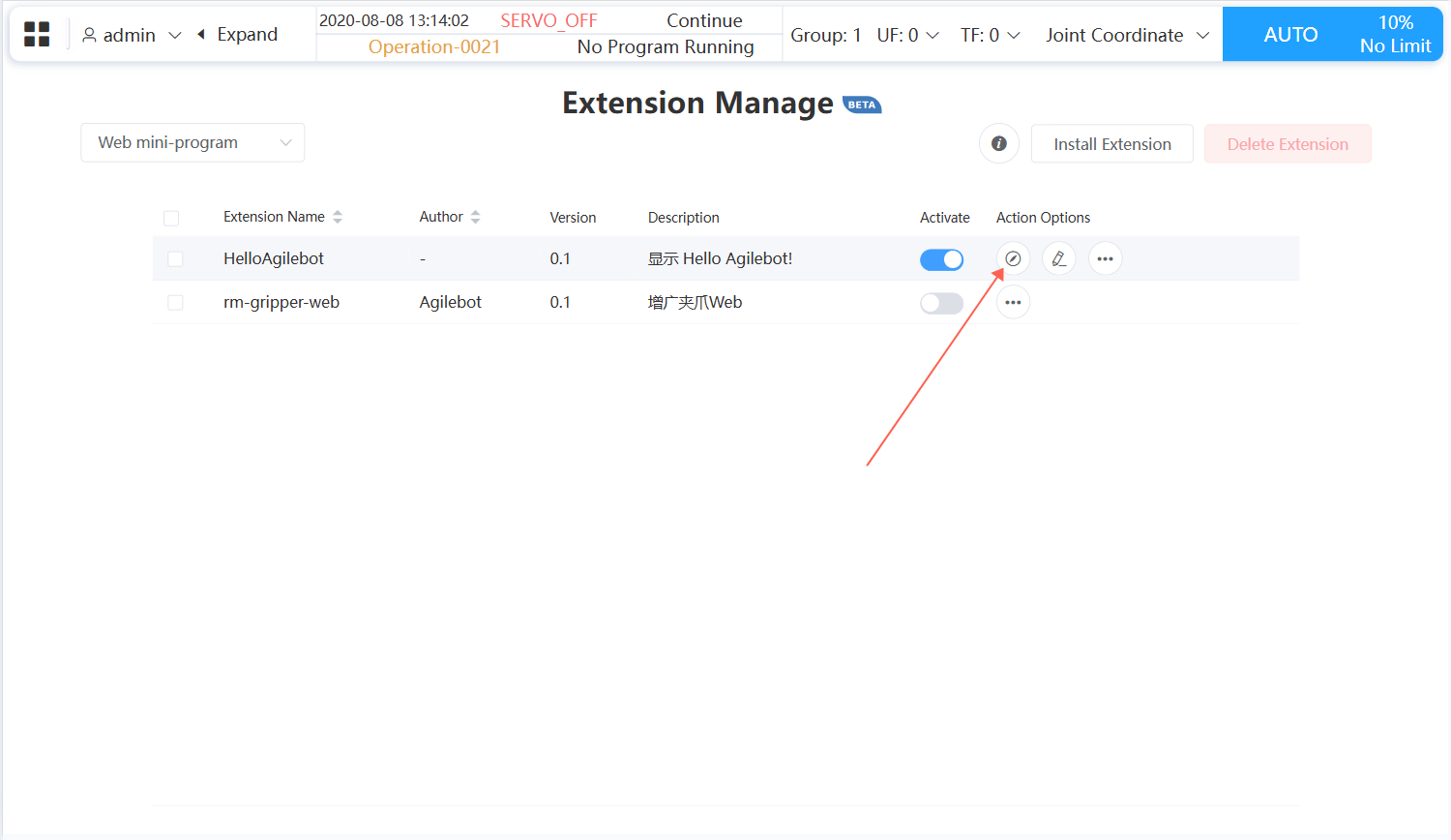 When extension web pages (including Web Mini Programs and General Services ) are open, physical buttons and shortcuts on the industrial teaching pendant will be disabled.