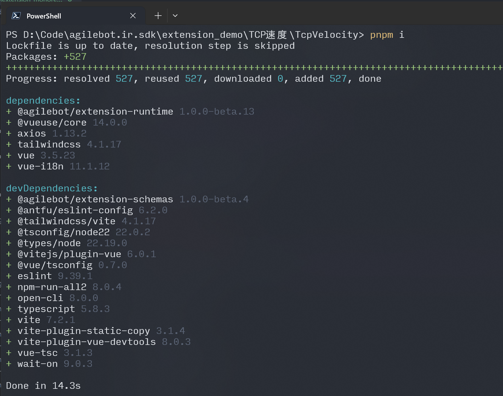 PowerShell,进入TCP速度/TcpVelocity目录,执行pnpm i安装前端依赖