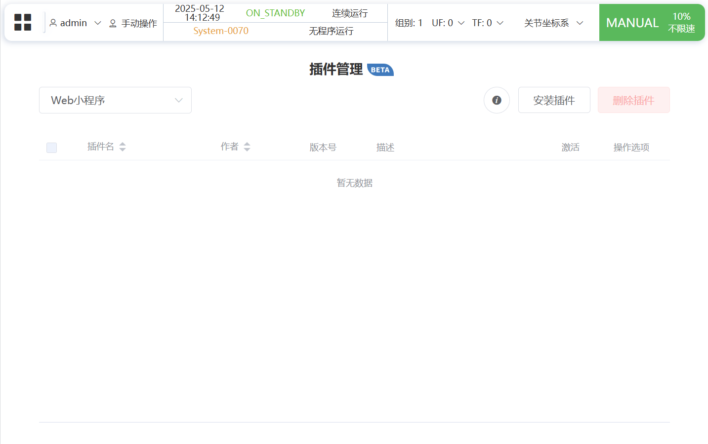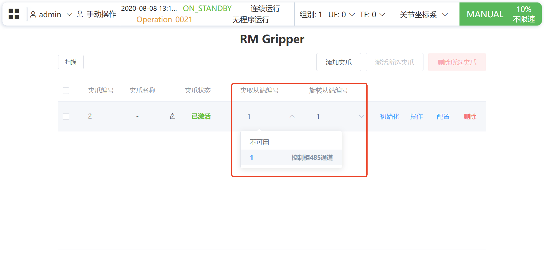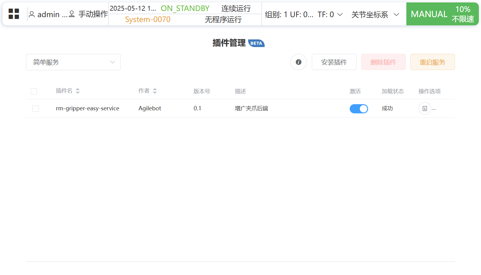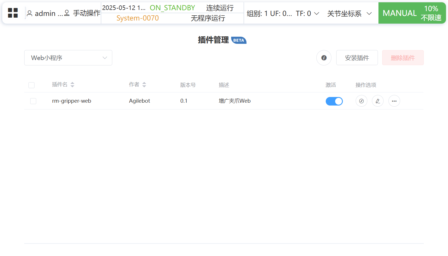 打开 应用 - 插件 - rm-gripper-web ,可进入配置界面