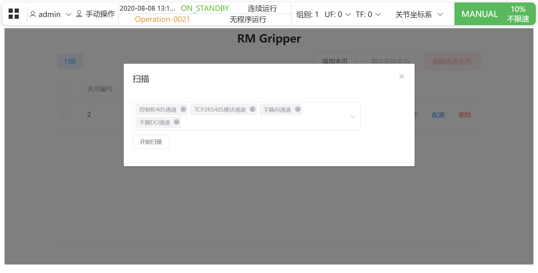 点击 扫描 ,可扫描各通道下的手爪