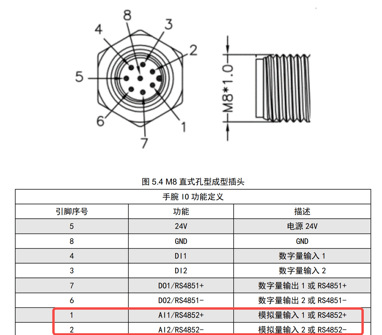 请选择下图:引脚 5 供 24v, 引脚 8 供电 0V,并 查看 4.3 如何在机器人软件配置