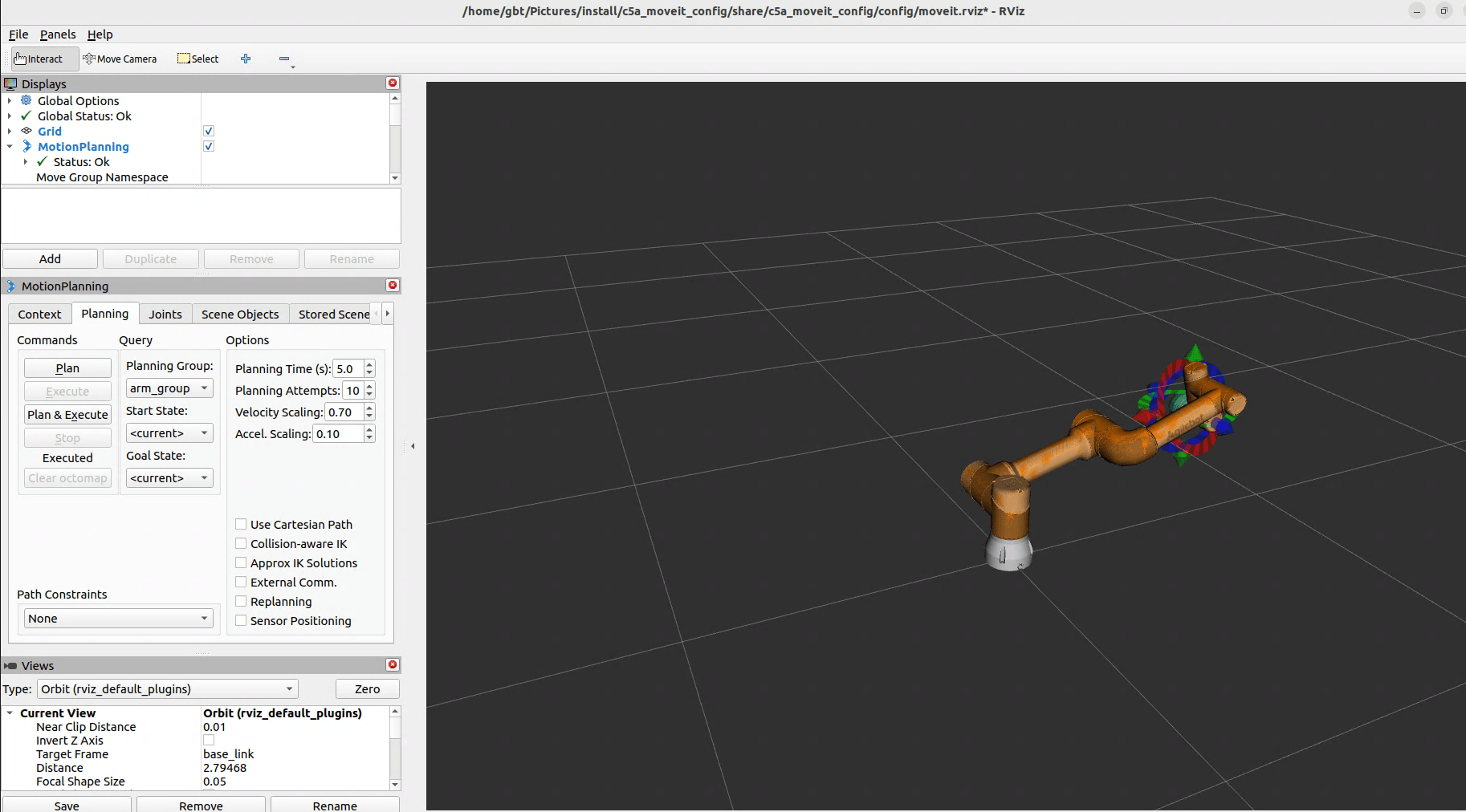 ros2 launch c5a_moveit_config demo.launch.py这将启动 MoveIt2 的演示界面,允许您进行路径规划和其他操作。